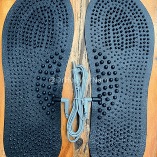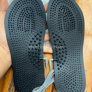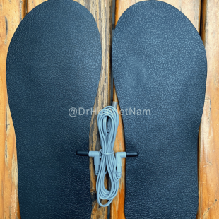 🔹 Bước 2: Cắm đầu dây nhỏ (trắng/đen) vào lỗ cắm nằm bên trong lòng bàn chân của mỗi chiếc dép. Cắm đầu dây lớn còn lại vào máy Dr-Ho’s (máy xanh hoặc đỏ).
